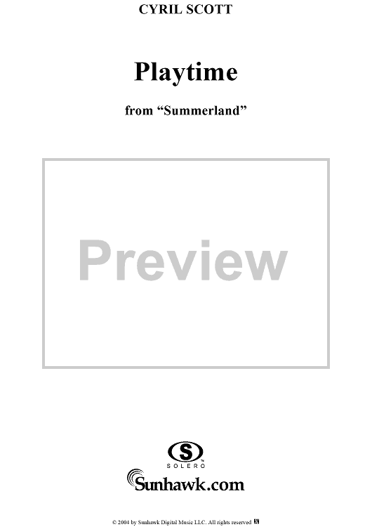 Digital Sheet Music for Playtime, No. 1 from Four Little Pieces "Summerland", Op. 54, No. 1 by Cyril Scott scored for Piano Solo; id:296389