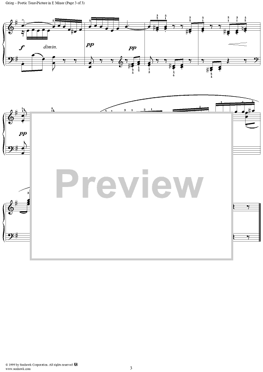 Digital Sheet Music for Poetic Tone-Picture in E Minor - No. 6 from "Six Poetic Tone-Pictures" Op. 3 by Edvard Grieg scored for Piano Solo; id:267709