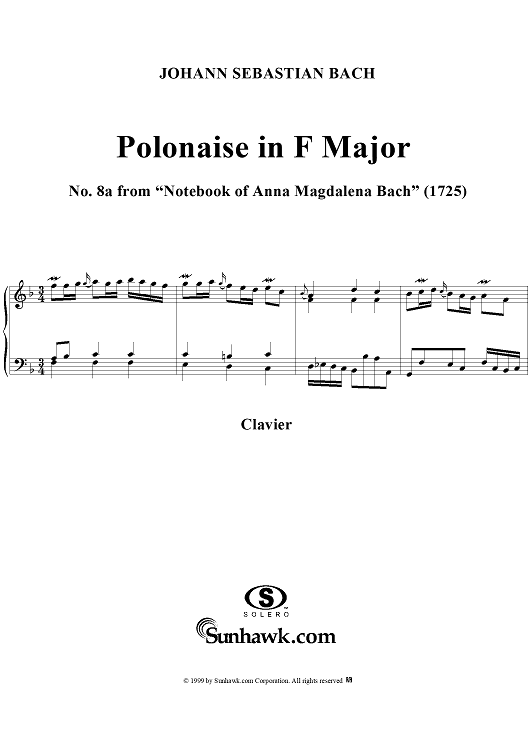 Digital Sheet Music for Polonaise in F Major from the Notebook of Anna Magdelena Bach by Johann Sebastian Bach scored for Piano Solo; id:241117