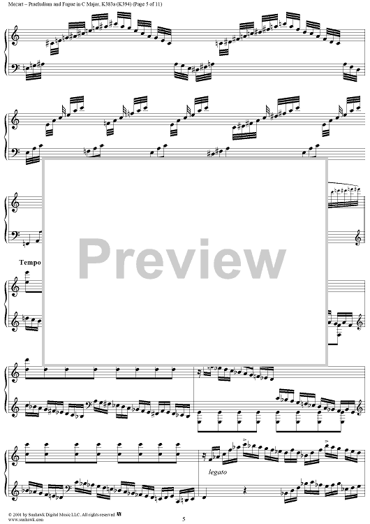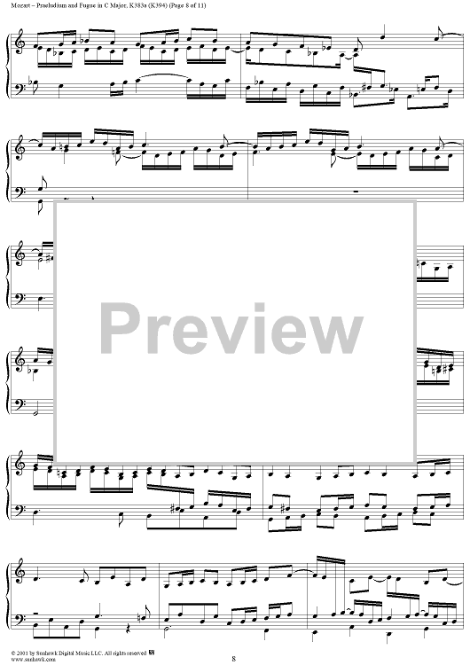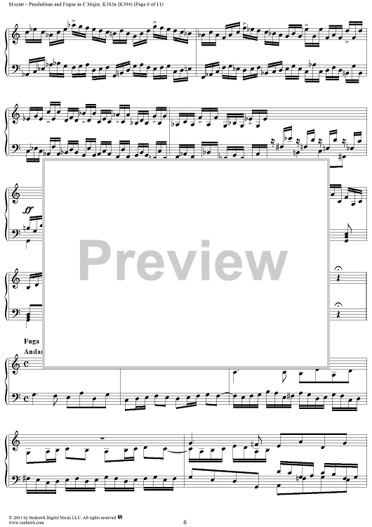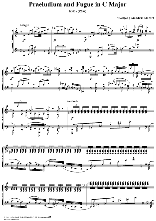 Digital Sheet Music for Praeludium and Fugue in C Major, K383a (K394) by Wolfgang Amadeus Mozart scored for Piano Solo; id:242009