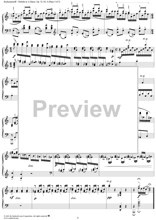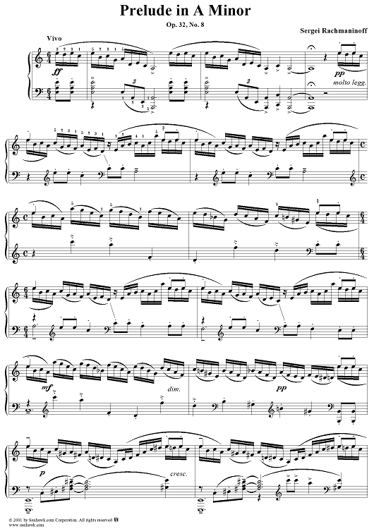 Digital Sheet Music for Prelude in A Minor, Op. 32, No. 8 by Sergei Rachmaninoff scored for Piano Solo; id:255184