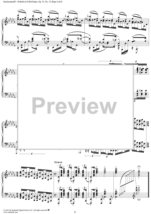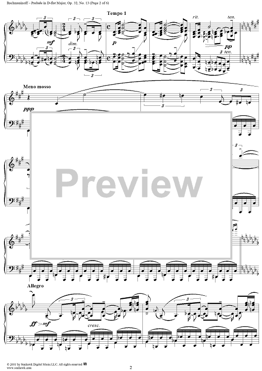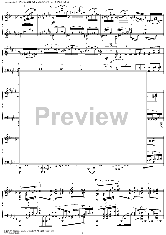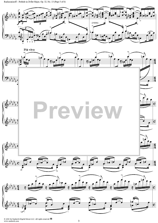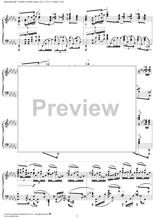 Digital Sheet Music for Prelude in D-flat major, Op. 32, No. 13 by Sergei Rachmaninoff scored for Piano Solo; id:255181