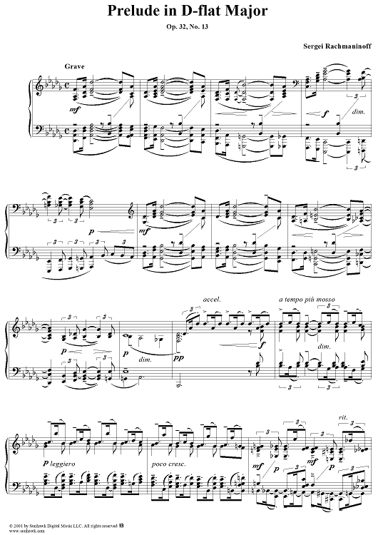 "Prelude in D-flat major, Op. 32, No. 13" Sheet Music by Sergei Rachmaninoff