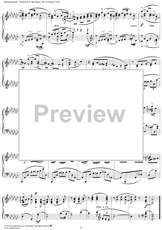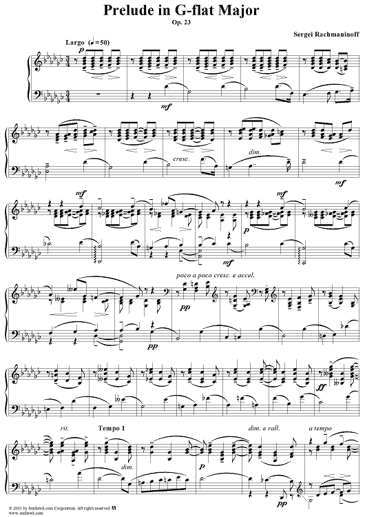 Digital Sheet Music for Prelude in G-flat Major, Op. 23, No. 10 by Sergei Rachmaninoff scored for Piano Solo; id:255590