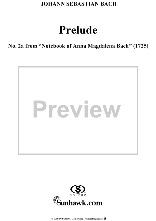 Digital Sheet Music for Prelude - No. 2a from "Notebook of Anna Magdalena Bach" (1725) by Johann Sebastian Bach scored for Piano Solo; id:273952