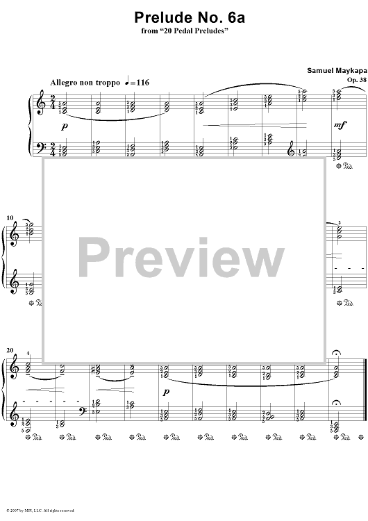 "Prelude No. 6a" Sheet Music by Samuel Maykapar