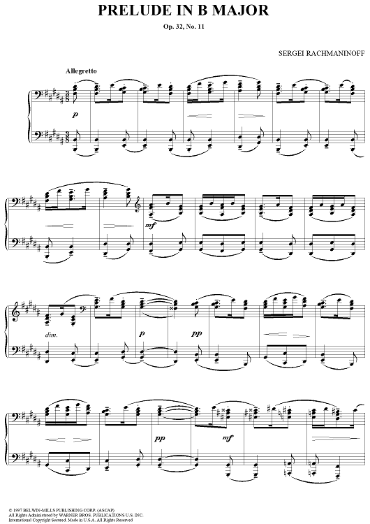 "Prelude, Op. 32, No. 11 in B major" Sheet Music by Sergei Rachmaninoff