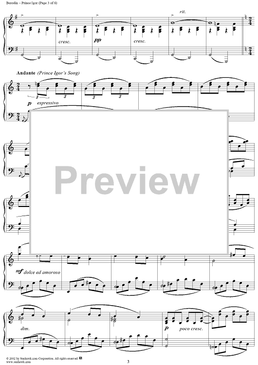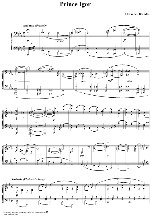 Digital Sheet Music for Prince Igor by Alexander Borodin scored for Piano Solo; id:252711