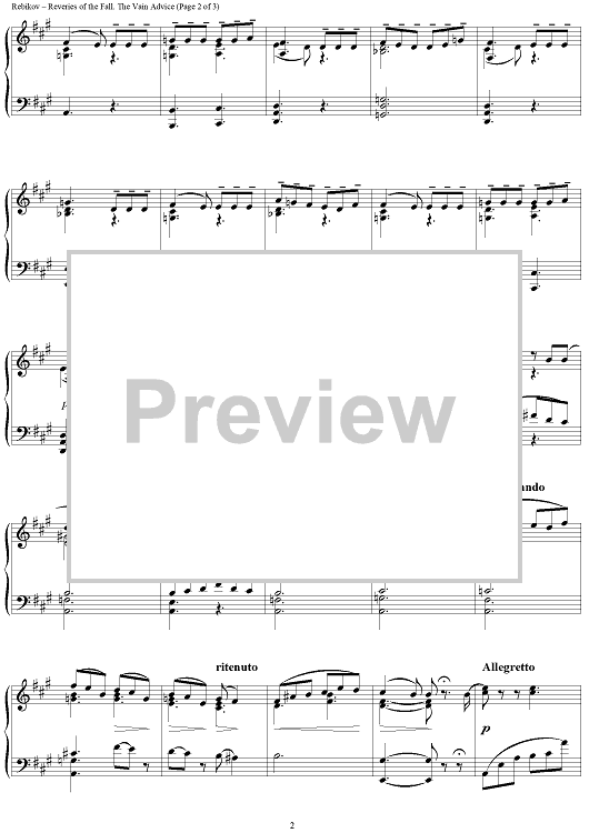 Digital Sheet Music for Reveries of the Fall. 12. The Vain Advice by , Vladimir Rebikov scored for Piano Solo; id:364304