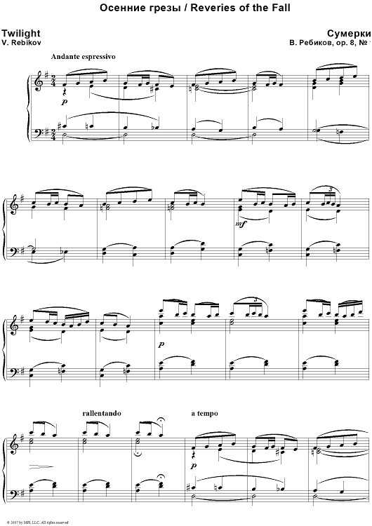 "Reveries of the Fall. 13. Twilight" Sheet Music by Vladimir Rebikov