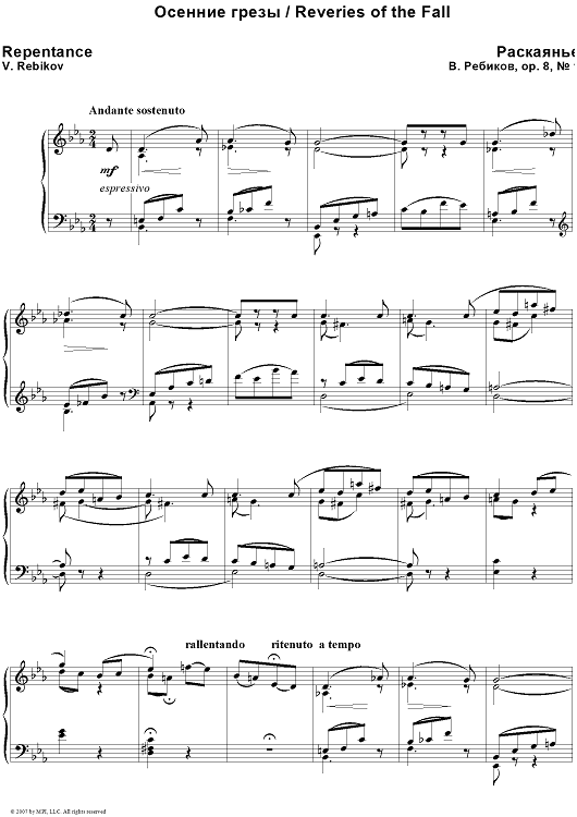 "Reveries of the Fall. 14. Repentance" Sheet Music by Vladimir Rebikov