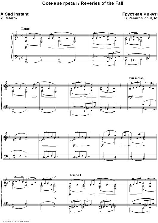 "Reveries of the Fall. 3. A Sad Instant" Sheet Music by Vladimir Rebikov