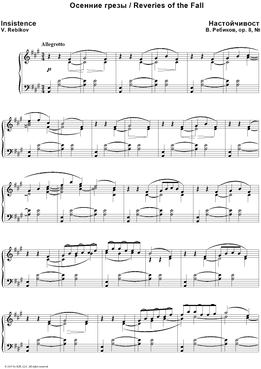 Digital Sheet Music for Reveries of the Fall. 6. Insistence by , Vladimir Rebikov scored for Piano Solo; id:364298