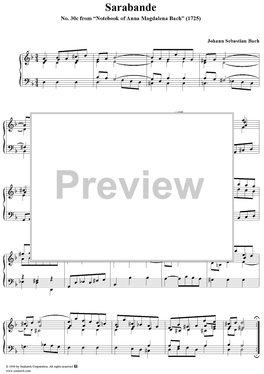 Digital Sheet Music for Sarabande - No. 30c from "Notebook of Anna Magdalena Bach" (1725) by Johann Sebastian Bach scored for Piano Solo; id:274244
