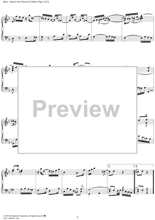 Digital Sheet Music for Scherzo for Clavier (in D minor) by Johann Sebastian Bach scored for Piano Solo; id:276274