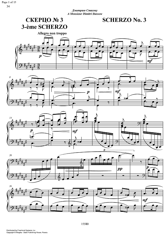 Digital Sheet Music for Scherzo No. 3 by Mily Balakirev scored for Piano Solo; id:337165