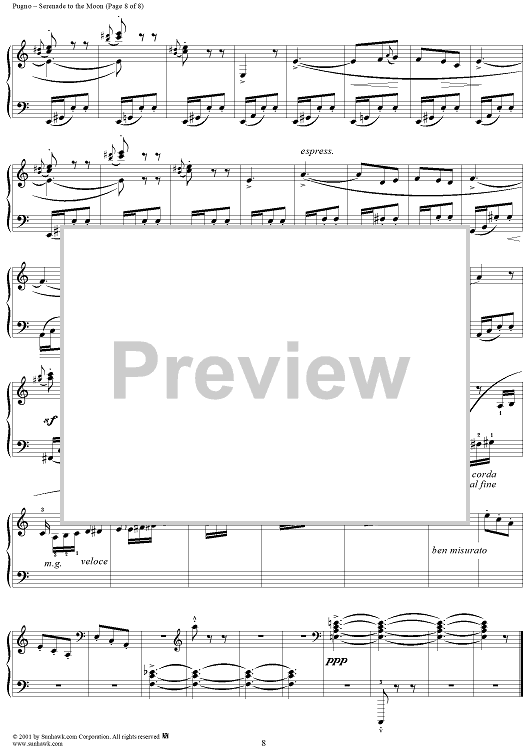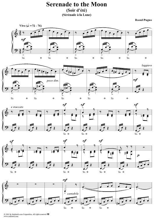 Digital Sheet Music for Serenade to the Moon (Sérénade à la lune) (Soir d'été) by Raoul Pugno scored for Piano Solo; id:254579