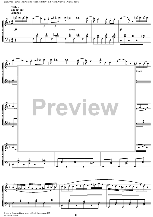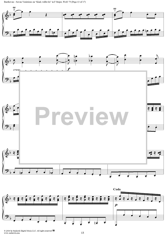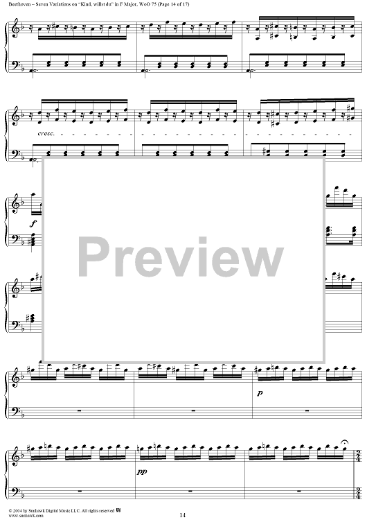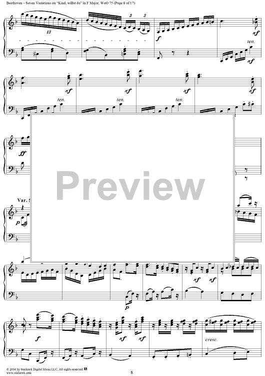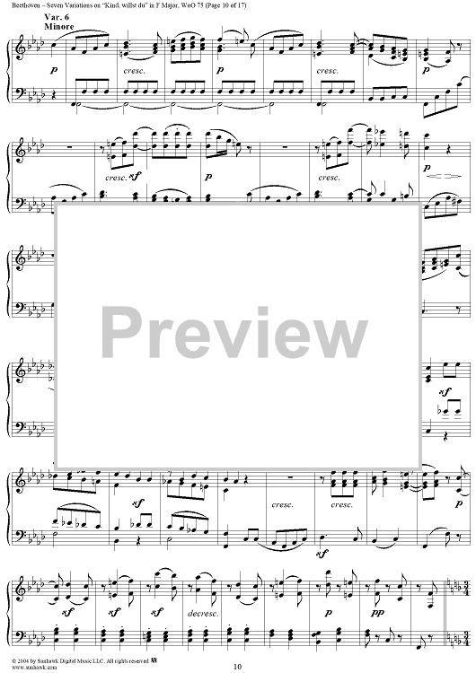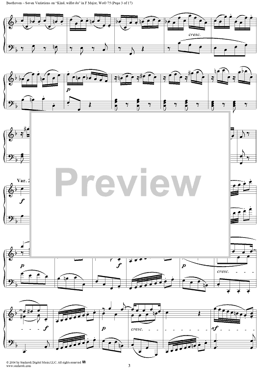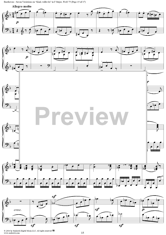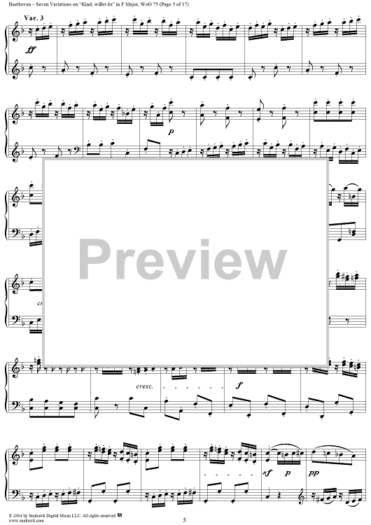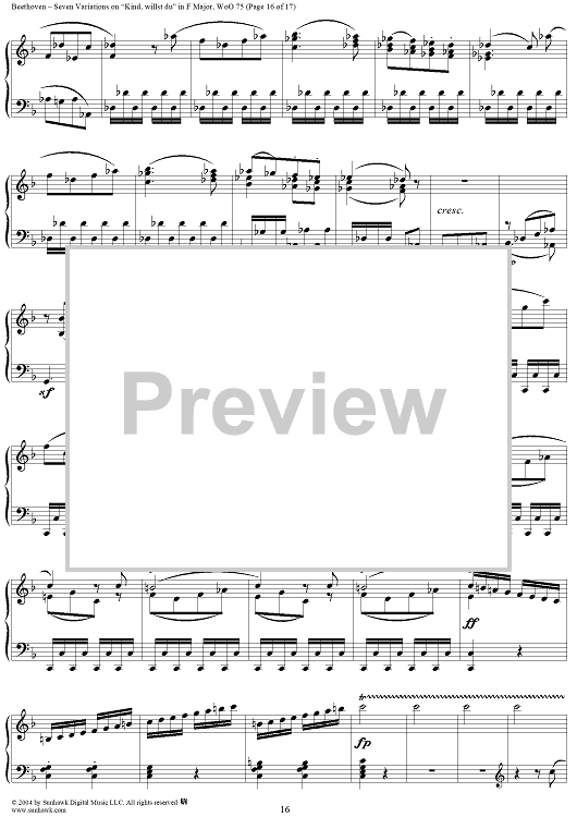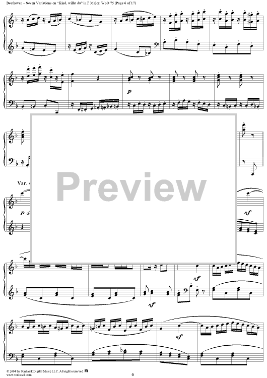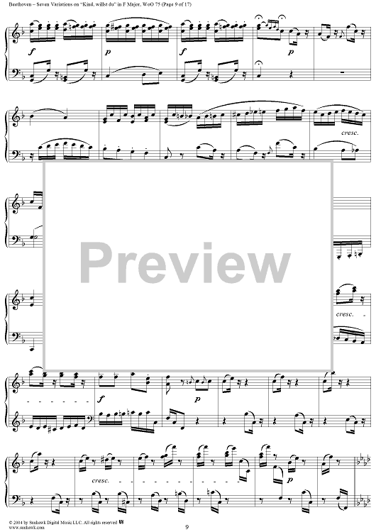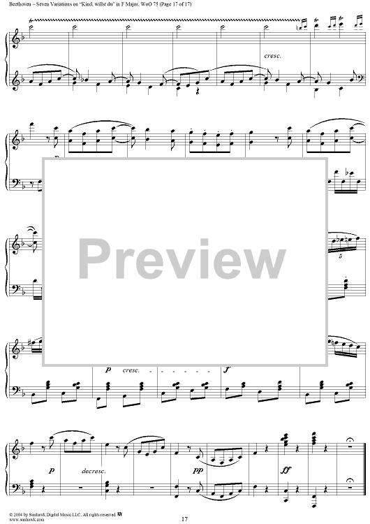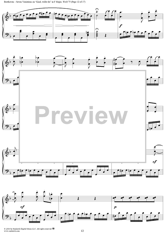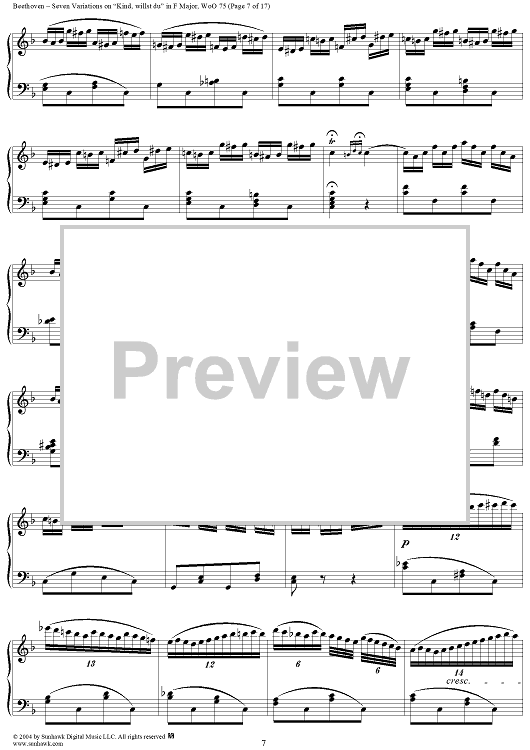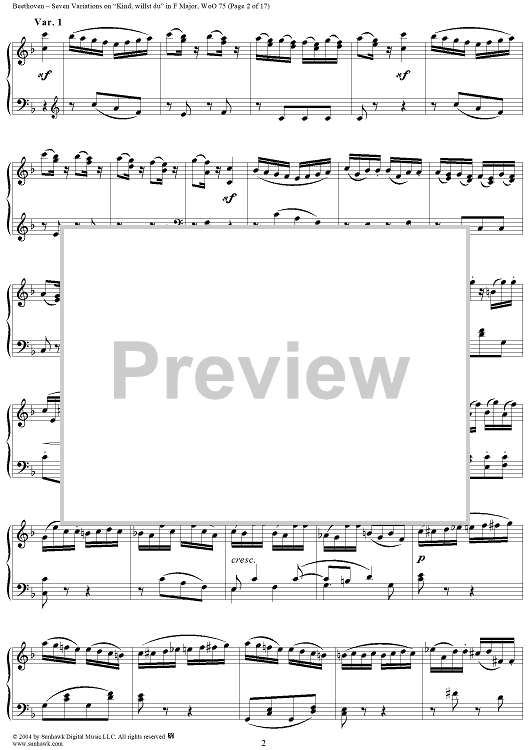 Digital Sheet Music for Seven Variations on "Kind, willst du" in F Major, WoO 75 by Ludwig van Beethoven scored for Piano Solo; id:241989