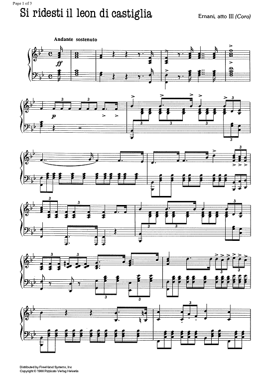 Digital Sheet Music for Si ridesti il leon di castiglia from Ernani by , Giuseppe Verdi, G. Danieli scored for Piano Solo; id:329228