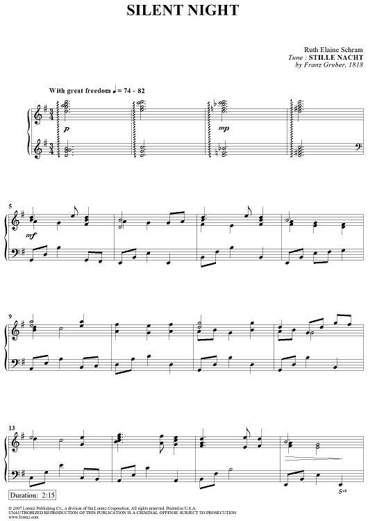 Digital Sheet Music for Silent Night by Franz Xaver Gruber, Ruth Elaine Schram scored for Piano Solo; id:434478