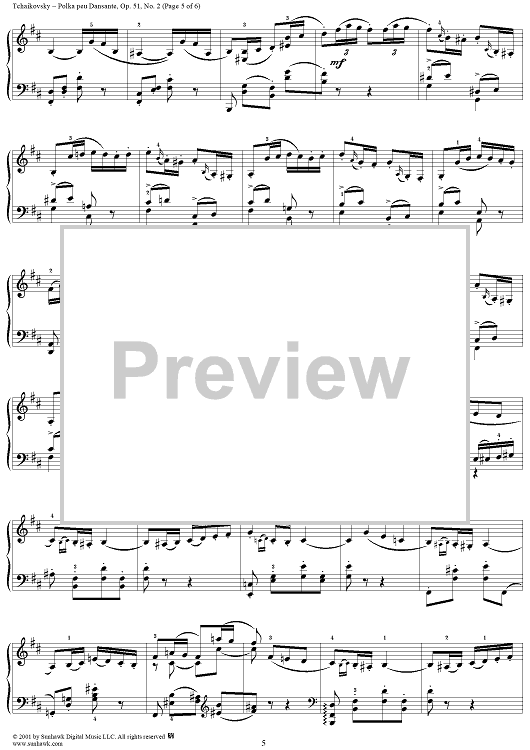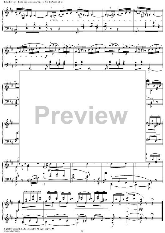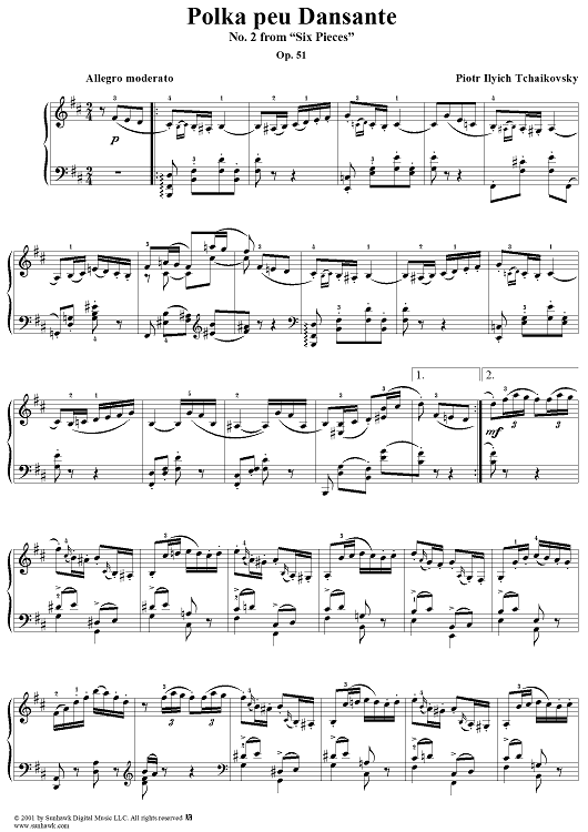 "Six Pieces. No. 2. Polka for Dancing" Sheet Music by Peter Ilyich Tchaikovsky