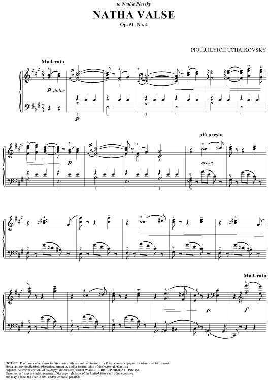 "Six Pieces. No. 4. Natha-Valse" Sheet Music by Peter Ilyich Tchaikovsky