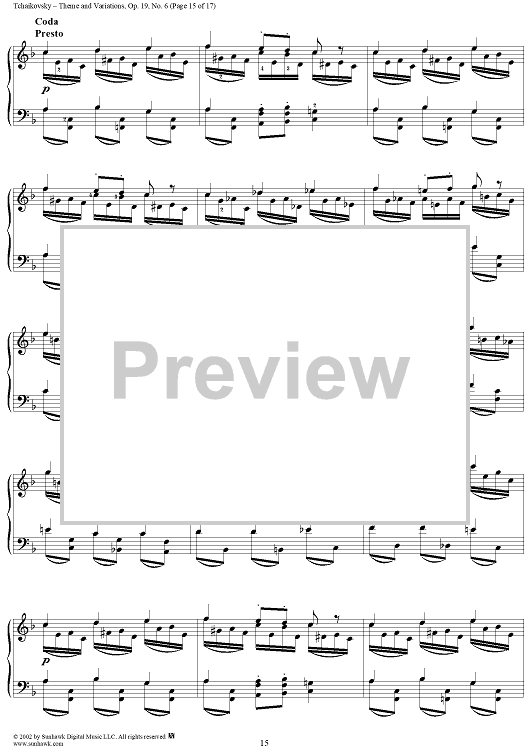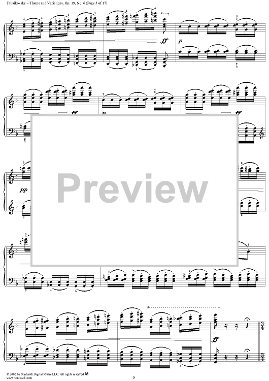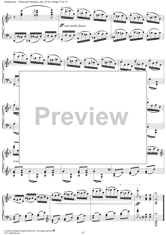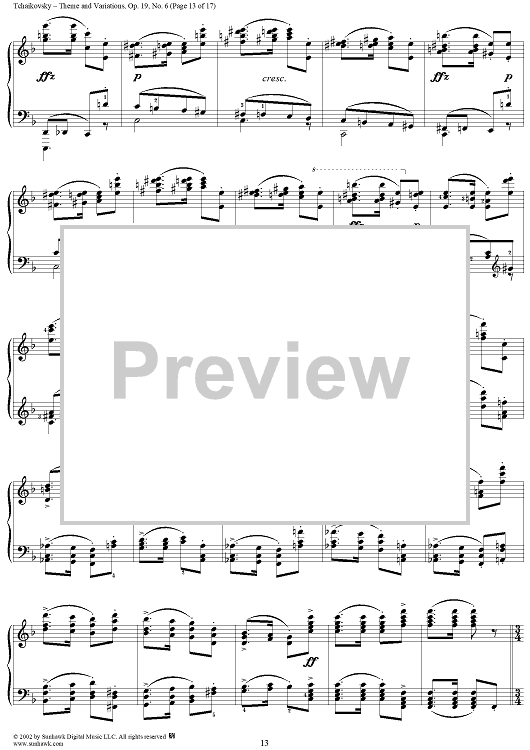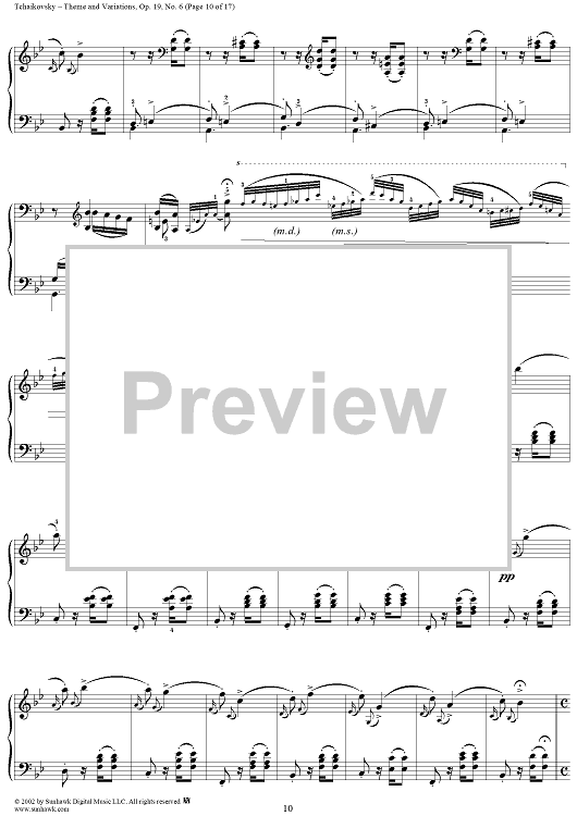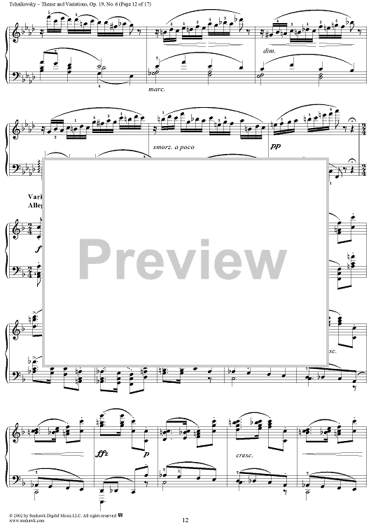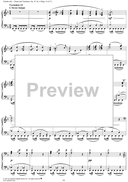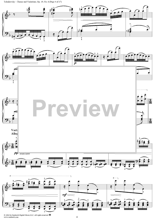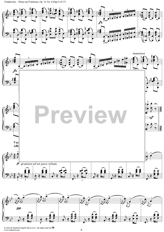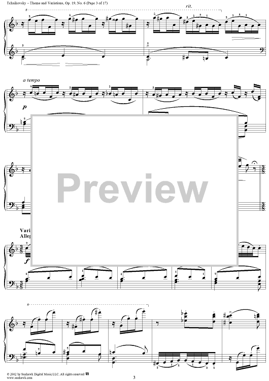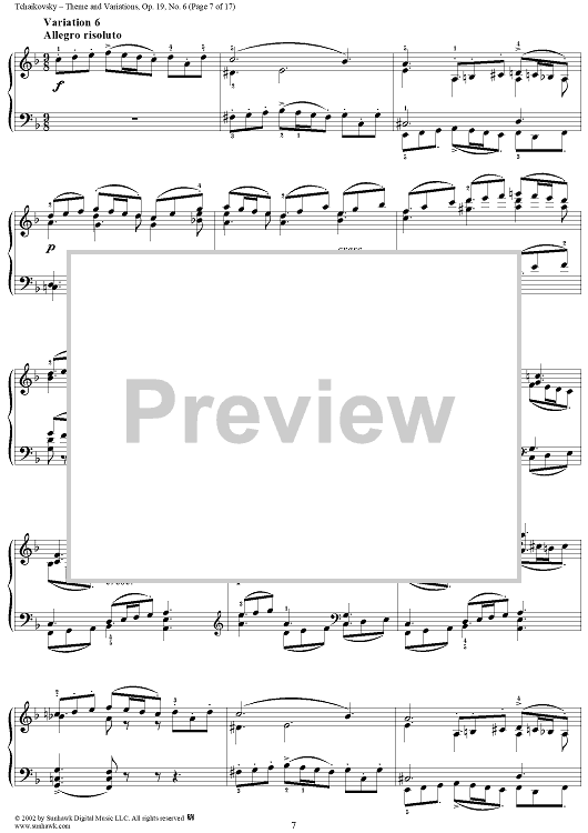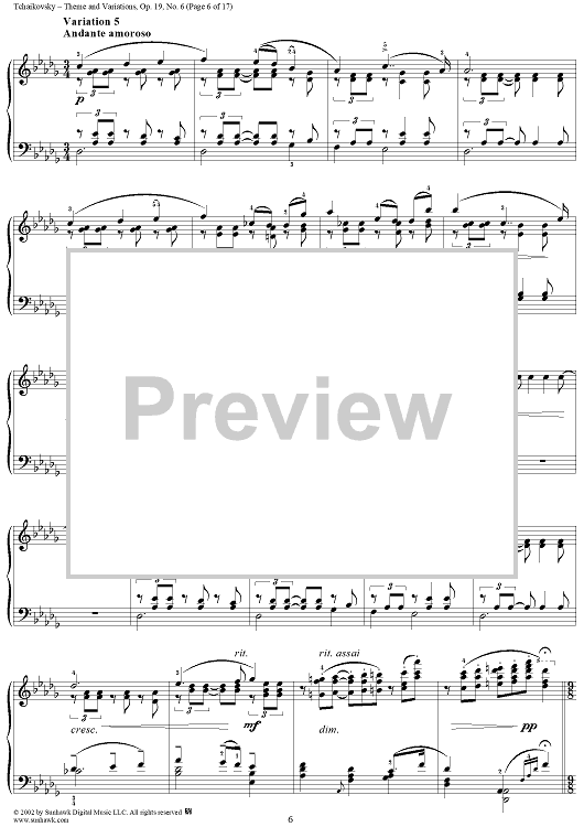 Digital Sheet Music for Six Pieces. No. 6. Thema and Variations in F major (F-dur) by Peter Ilyich Tchaikovsky scored for Piano Solo; id:259767