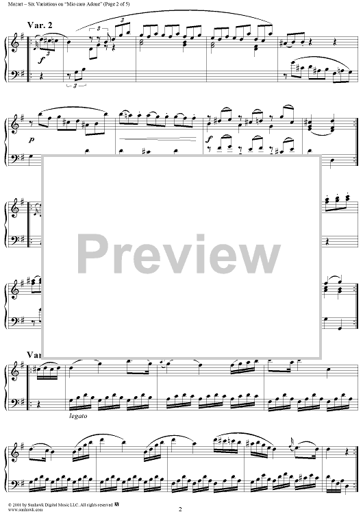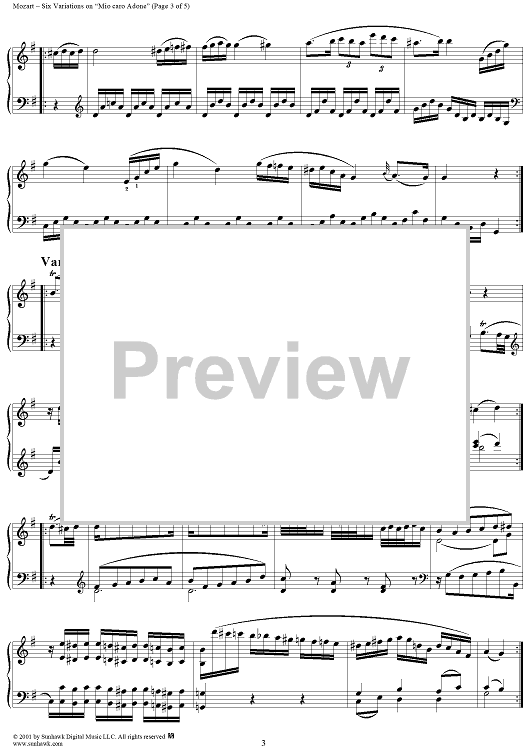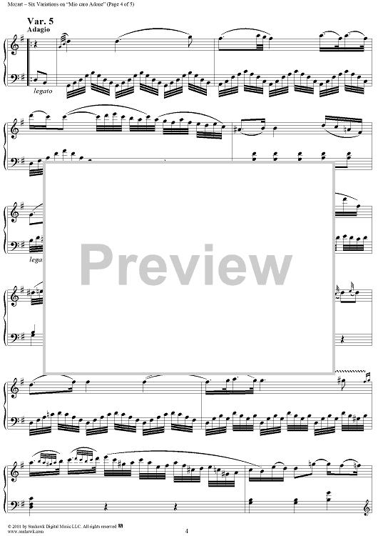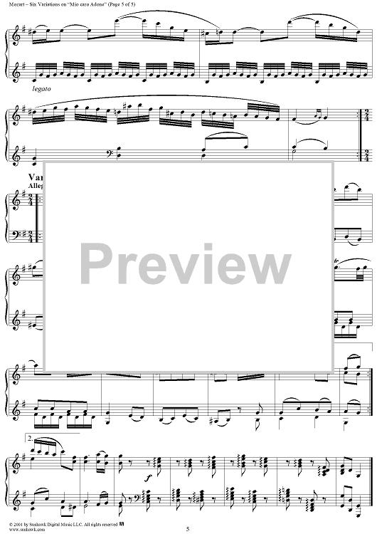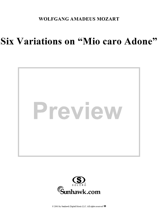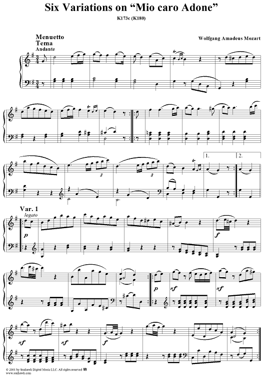 Digital Sheet Music for Six Variationen, K173c (K180) by Wolfgang Amadeus Mozart scored for Piano Solo; id:255322