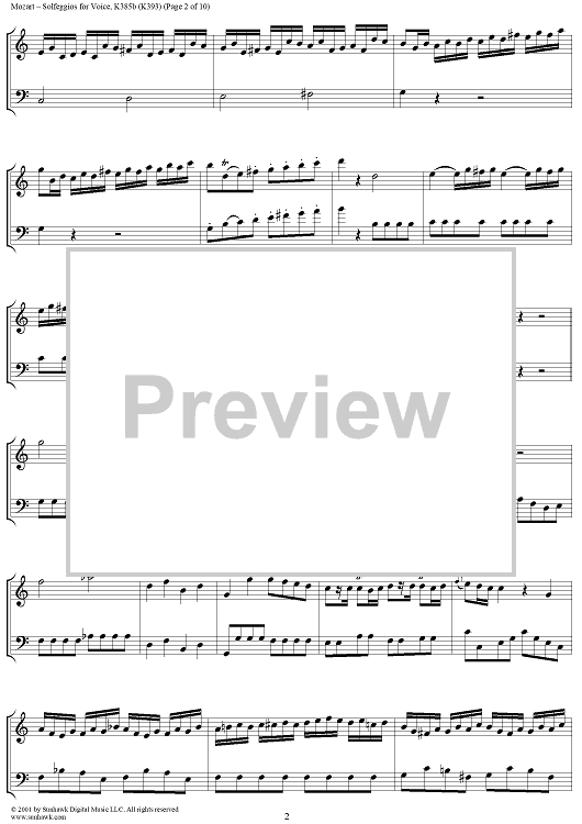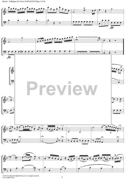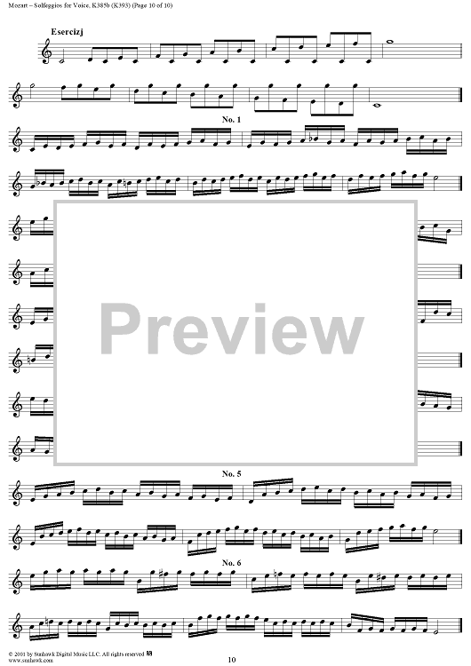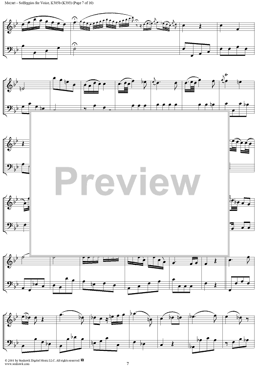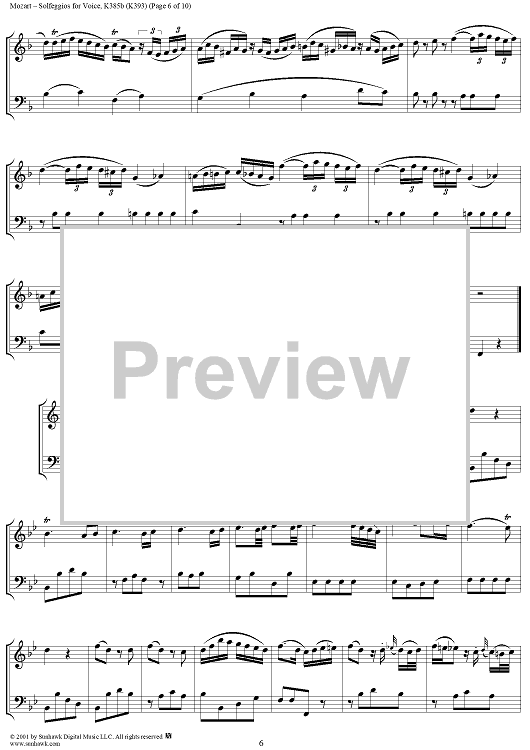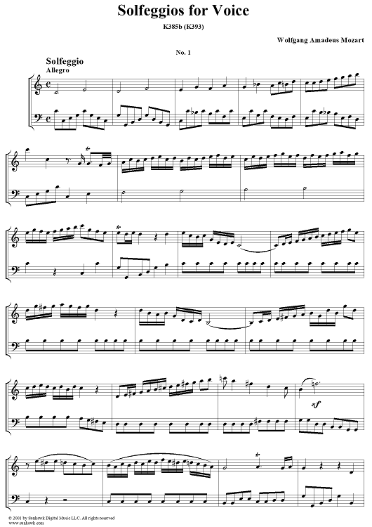 Digital Sheet Music for Solfeggien, K385b (K393) by Wolfgang Amadeus Mozart scored for Piano Solo; id:253457