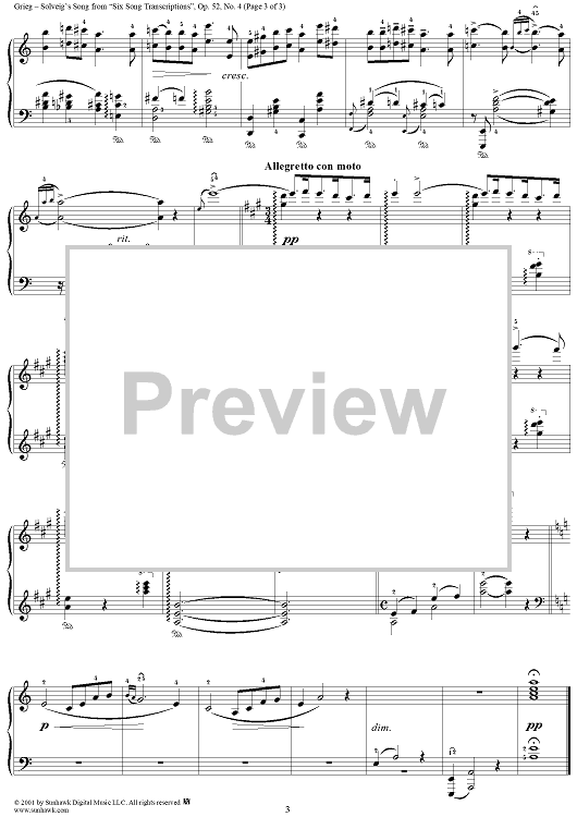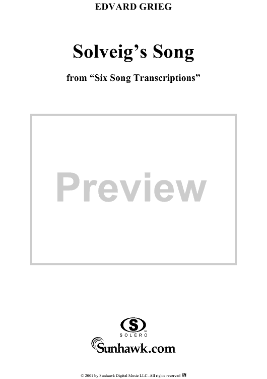 Digital Sheet Music for Solveig's Song, from Six Song Transcriptions, Op. 52, no. 4 by Edvard Grieg scored for Piano Solo; id:255272