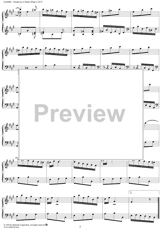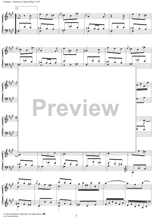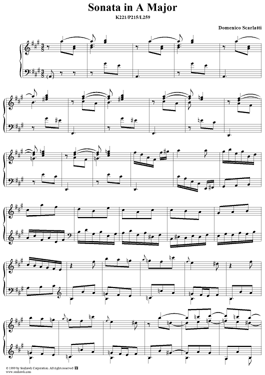 Digital Sheet Music for Sonata in A major (K221/P215/L259) by Domenico Scarlatti scored for Piano Solo; id:257642
