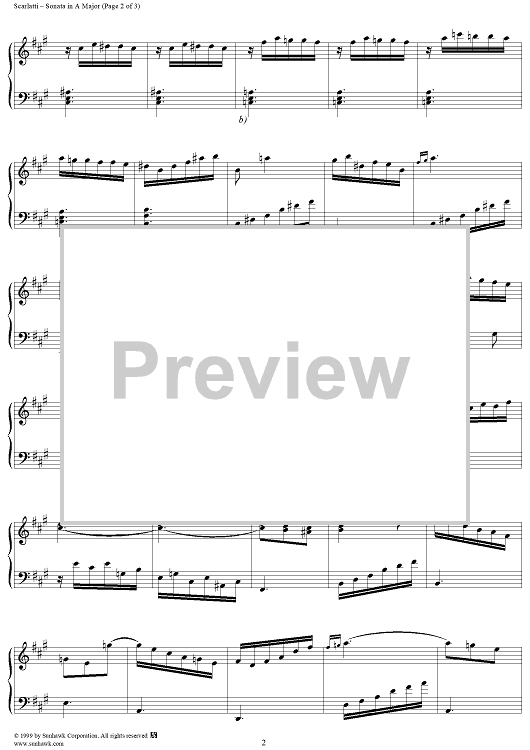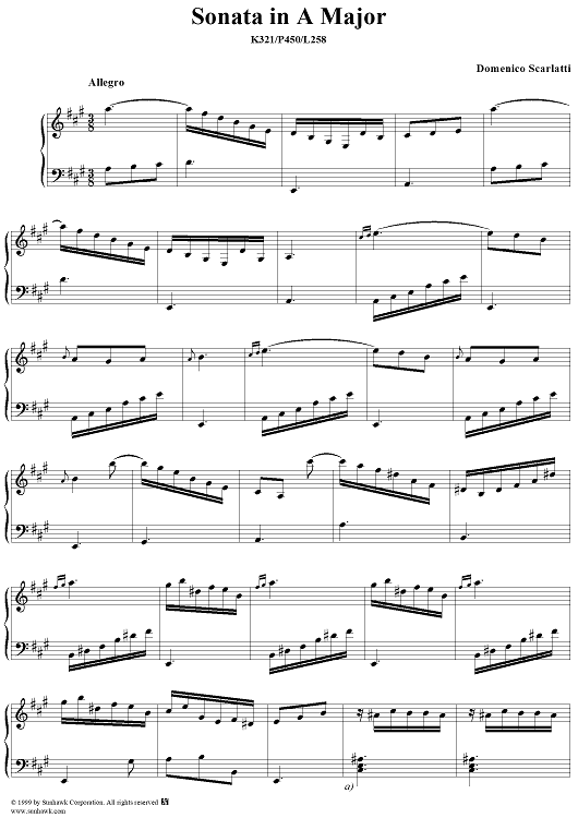 Digital Sheet Music for Sonata in A major (K321/P450/L258) by Domenico Scarlatti scored for Piano Solo; id:257641