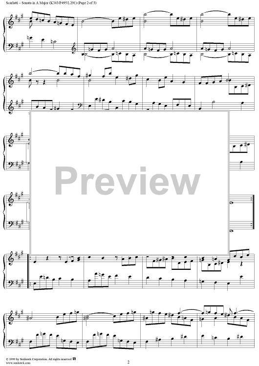 Digital Sheet Music for Sonata in A major (K343/P495/L291) by Domenico Scarlatti scored for Piano Solo; id:257484