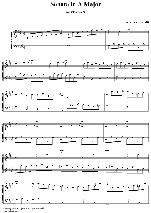 Digital Sheet Music for Sonata in A major - K533/P537/L395 by Domenico Scarlatti scored for Piano Solo; id:257236
