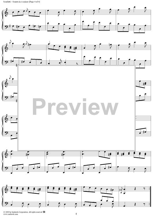 Digital Sheet Music for Sonata in A minor - K218/P237/L392 by Domenico Scarlatti scored for Piano Solo; id:257289