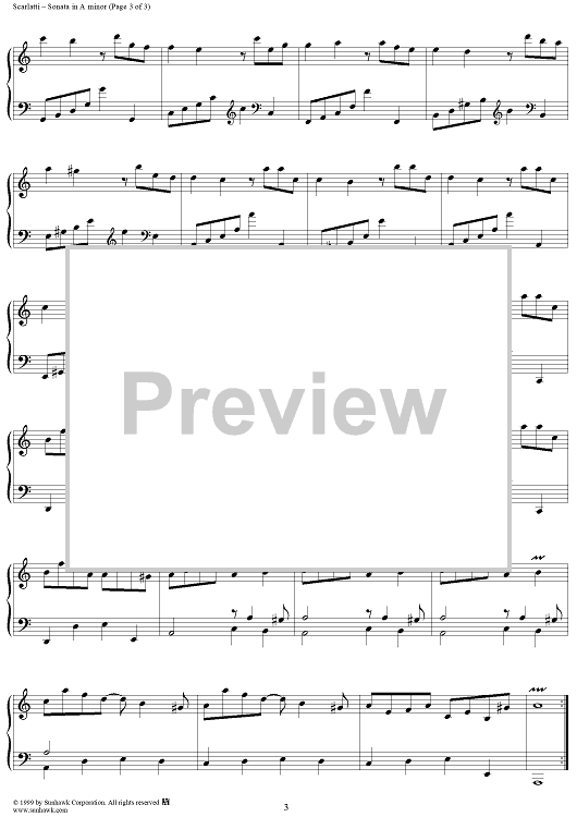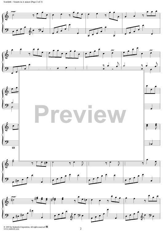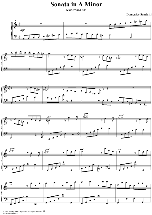Digital Sheet Music for Sonata in A minor (K382/P508/LS33) by Domenico Scarlatti scored for Piano Solo; id:257716