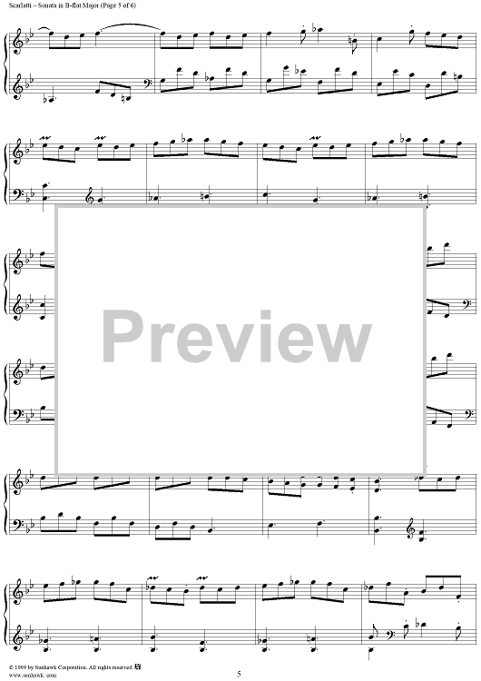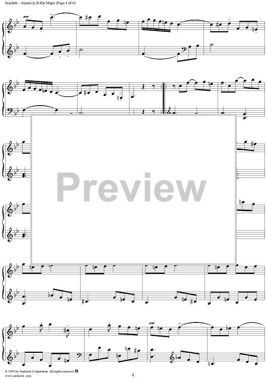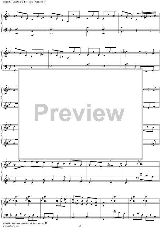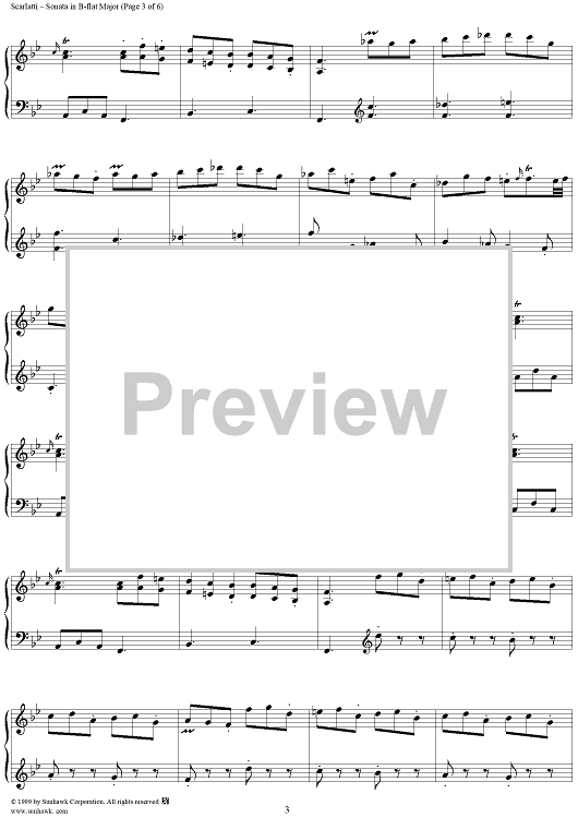 Digital Sheet Music for Sonata in B-flat major (K172/P313/LS40) by Domenico Scarlatti scored for Piano Solo; id:257720