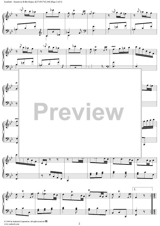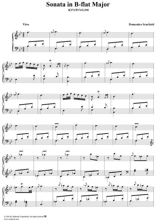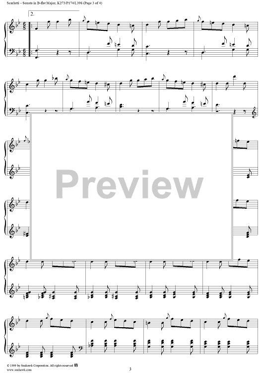 Digital Sheet Music for Sonata in B-flat major - K273/P174/L398 by Domenico Scarlatti scored for Piano Solo; id:257306