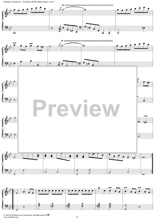 Digital Sheet Music for Sonata in B-flat major - K332/P519/L141 by Domenico Scarlatti scored for Piano Solo; id:257092