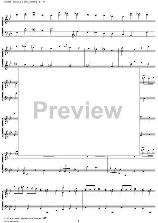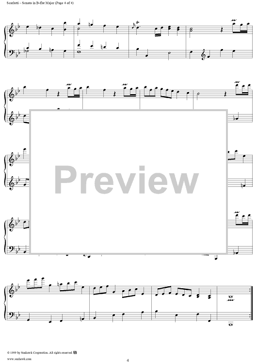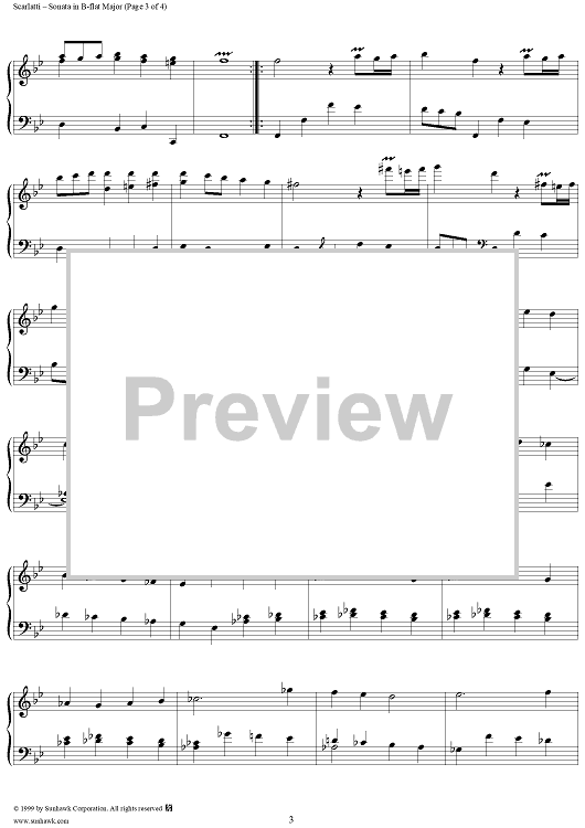 Digital Sheet Music for Sonata in B-flat major (K410/P372/LS43) by Domenico Scarlatti scored for Piano Solo; id:257459