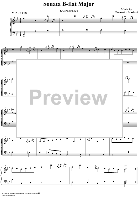 Digital Sheet Music for Sonata in B-flat major (K42/P120/LS36) by Domenico Scarlatti scored for Piano Solo; id:257721
