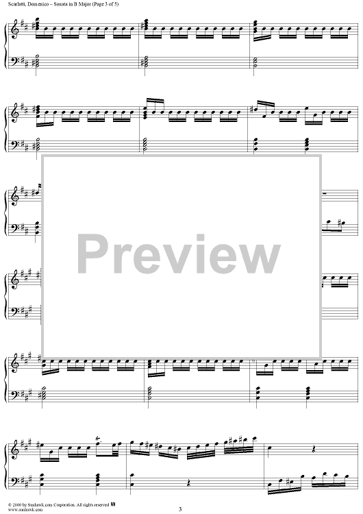 Digital Sheet Music for Sonata in B major - K261/P300/L148 by Domenico Scarlatti scored for Piano Solo; id:257307