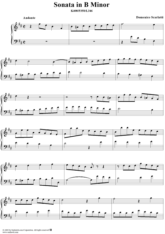 Digital Sheet Music for Sonata in B minor, K408 by Domenico Scarlatti scored for Piano Solo; id:234018