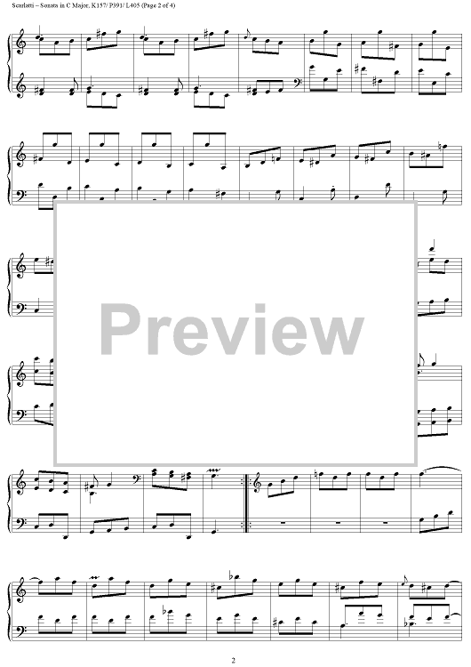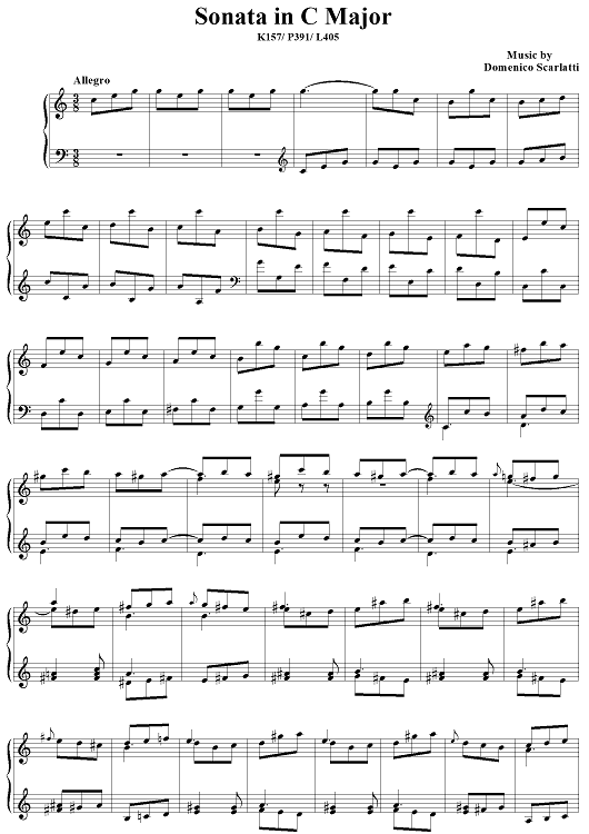 Digital Sheet Music for Sonata in C major - K157/P391/L405 by Domenico Scarlatti scored for Piano Solo; id:256841