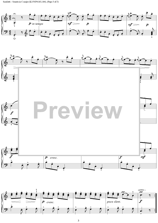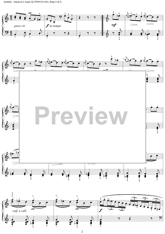 Digital Sheet Music for Sonata in C major (K159/P418/L104) by Domenico Scarlatti scored for Piano Solo; id:257417