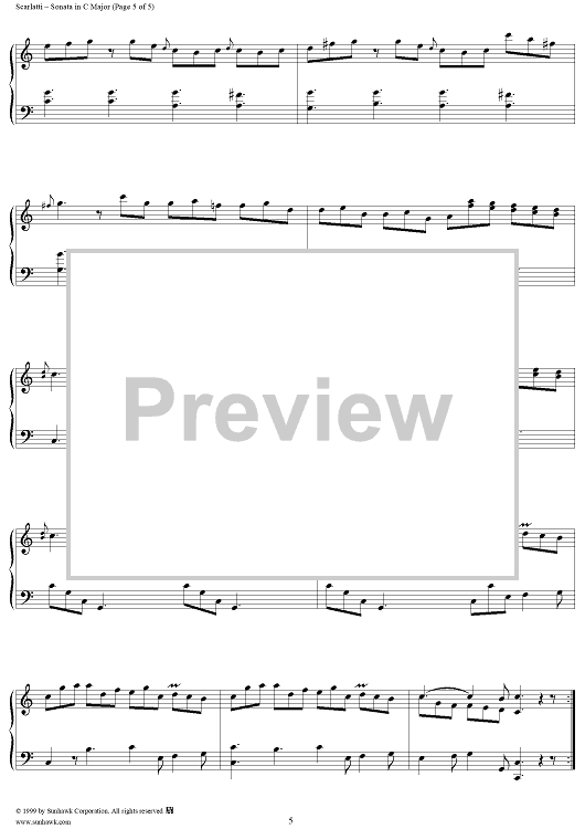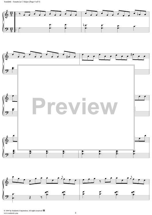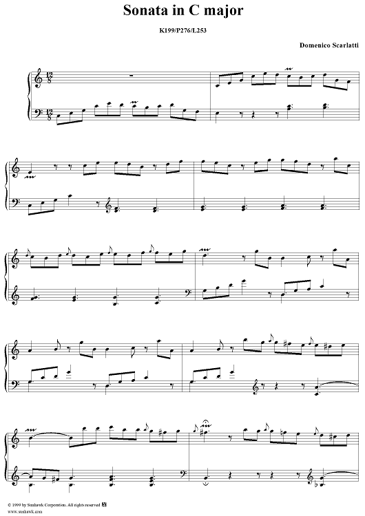 Digital Sheet Music for Sonata in C major (K199/P276/L253) by Domenico Scarlatti scored for Piano Solo; id:257644