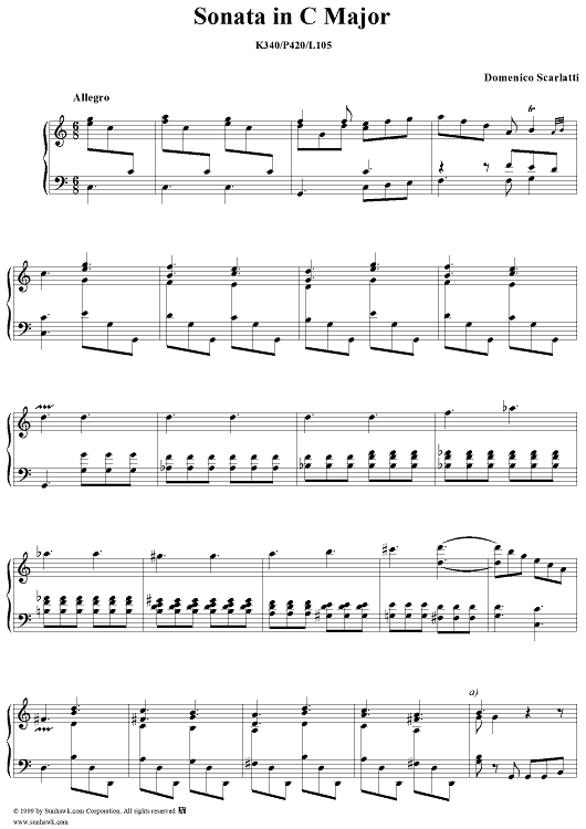 Digital Sheet Music for Sonata in C major - K340/P420/L105 by Domenico Scarlatti scored for Piano Solo; id:257101