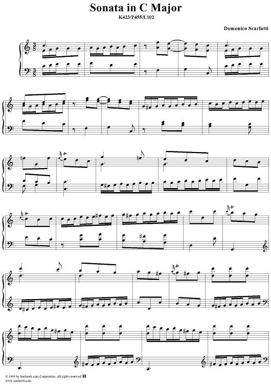 Digital Sheet Music for Sonata in C major - K423/P455/L102 by Domenico Scarlatti scored for Piano Solo; id:257211