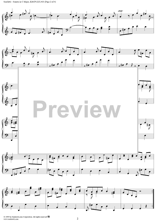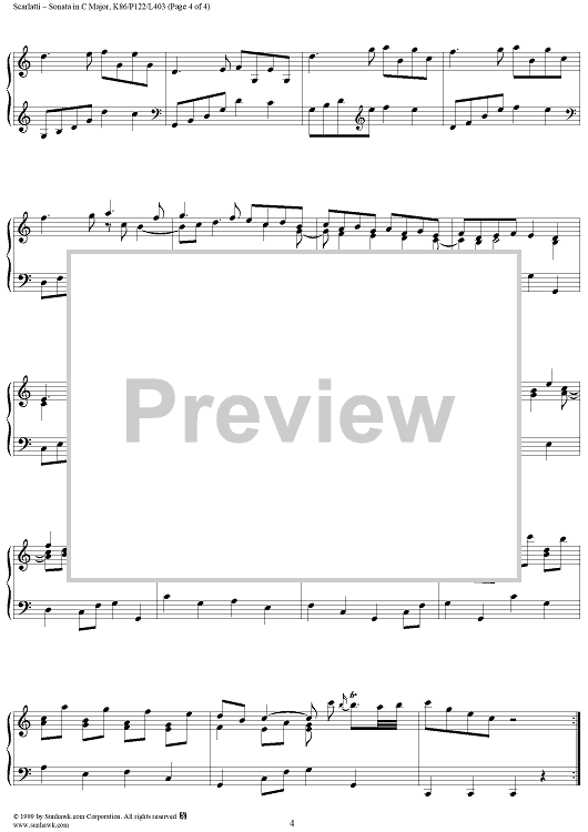Digital Sheet Music for Sonata in C major - K86/P122/L403 by Domenico Scarlatti scored for Piano Solo; id:257252