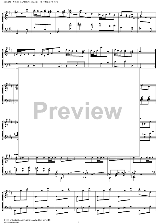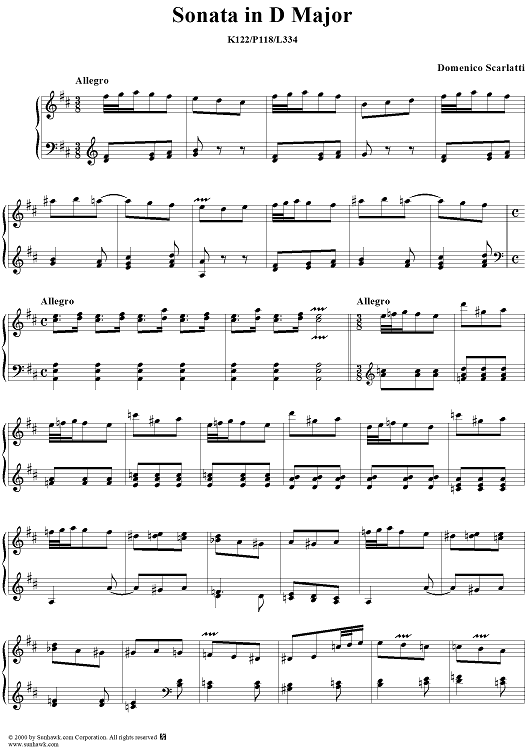 Digital Sheet Music for Sonata in D major, K122/P118/L334 by Domenico Scarlatti scored for Piano Solo; id:235626